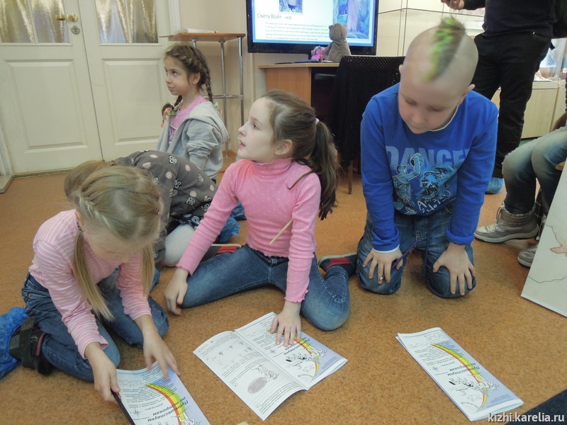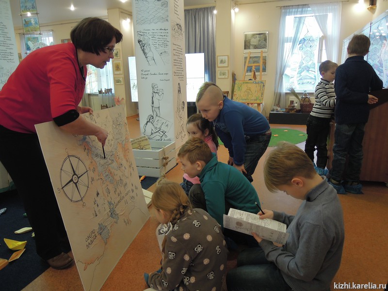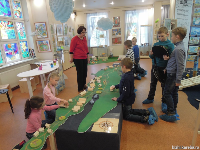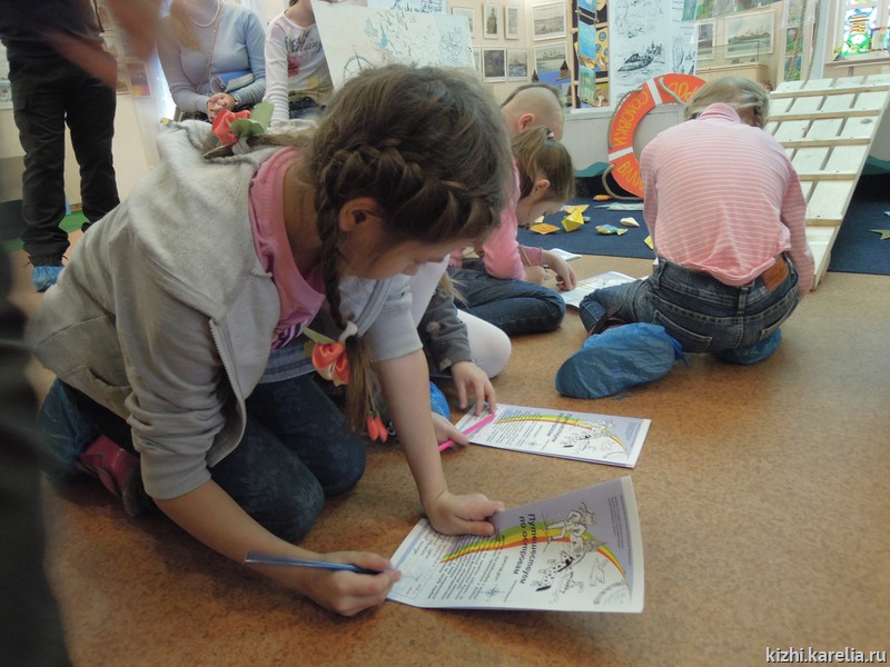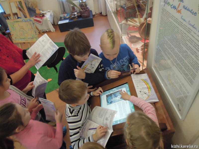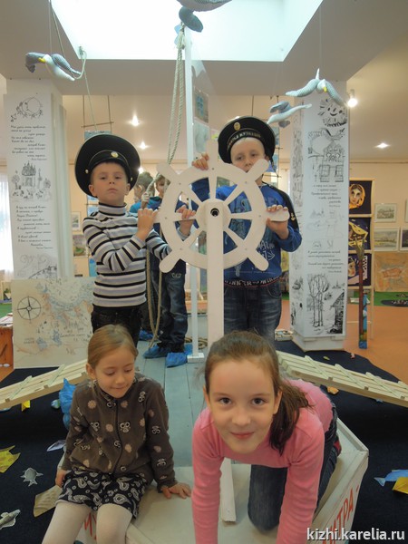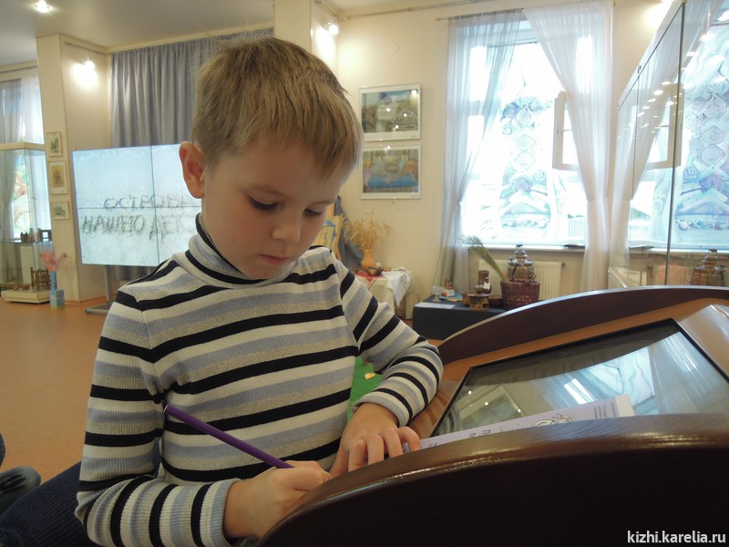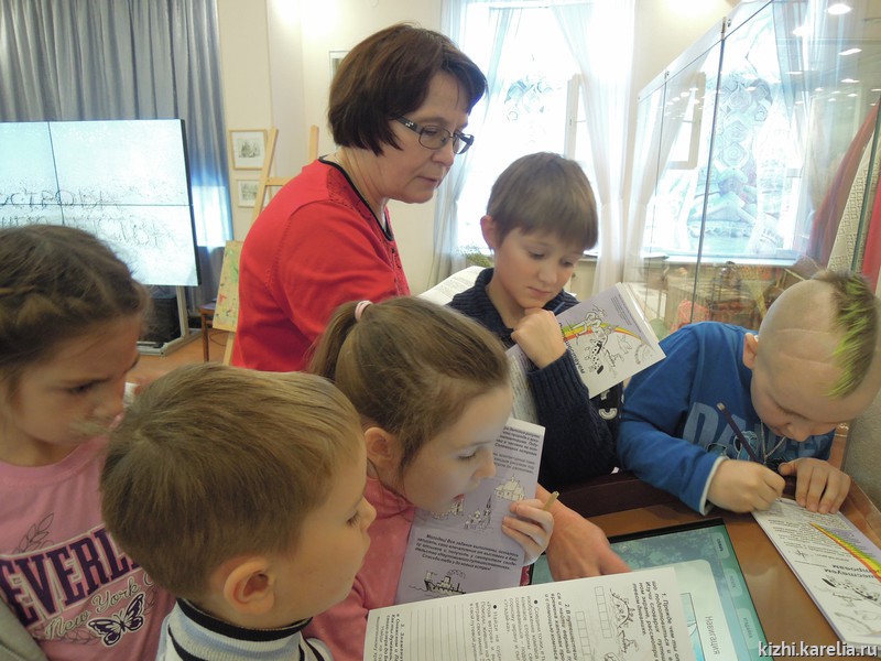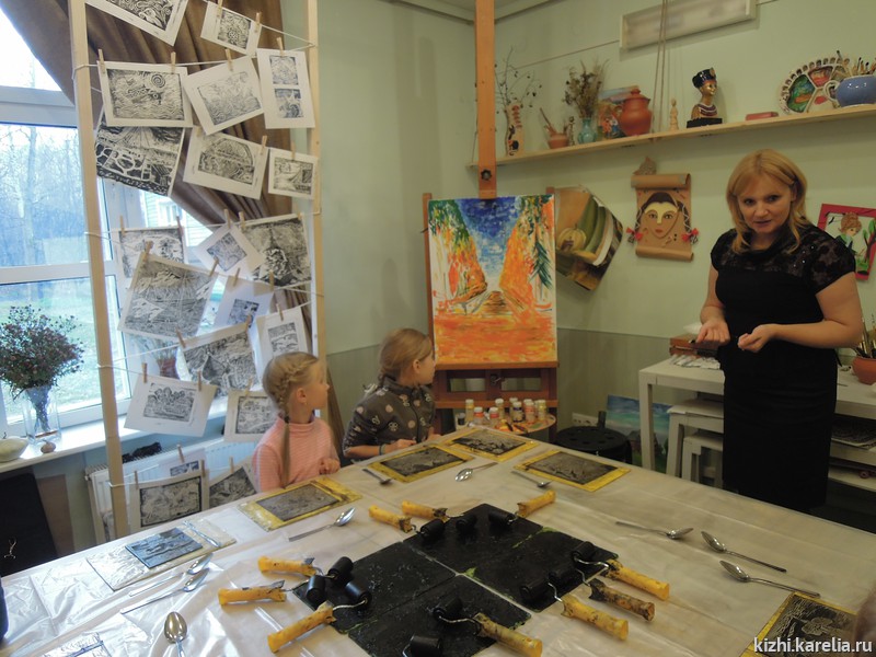 Тема первого дня «Умных каникул» — «Музейный остров». С островом Кижи, а также с другими заповедными островами — Валаам, Соловки — дети познакомились на интерактивной выставке «Острова нашего детства». Здесь же, в выставочном зале на ул. Федосовой, 19, состоялся мастер-класс в технике печатной графики.