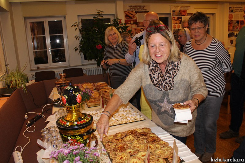 Ключевым и знаковым событием стало открытие выставки «Печь-хлопотать, сканцы катать» на немецком языке с дегустацией традиционных блюд народов Карелии. Лилия Кюнстле, заместитель председателя Общества «Запад-Восток», поприветствовала участников мероприятия и представила 13 информационных баннеров, рассказывающих о блюдах традиционной кухни народов Карелии. Названия блюд представлены на русском и немецком языках, а также на карельском, вепсском и финском языках. На банерах использованы изображения более 30 предметов кухонной утвари и быта из фондов Национального музея Республики Карелия и Шелтозерского вепсского этнографического музея им. Р. П. Лонина. В зале кафе «Hirsch» г. Тюбингена собралось около 40 человек, которые дегустировали блюда традиционной кухни народов Карелии — «калитки» и «пироги для зятя», а также настоящий иван-чай. Презентация выставки стала продолжением проекта «Калитка.RU», который выиграл Национальный музей Республики Карелия в рамках V грантового конкурса «Музеи Русского Севера» ОАО «Северсталь. Для жителей и гостей г. Тюбингена выставка будет работать до 11 ноября 2016 года.