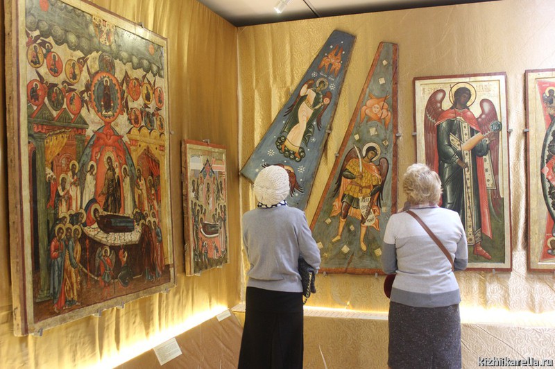 На выставке представлено более 30 икон ангельских чинов из коллекции музея-заповедника «Кижи». Вы увидите образы из иконостаса Преображенской церкви на острове Кижи, которые в следующий раз можно будет увидеть в интерьере знаменитого храма только после окончания его реставрации, и уникальные потолочные иконы XVIII века («небеса») из Заонежья. Аналогов им нет нигде в мире. Экспонируются также отдельные памятники второй половины XVII и XIX века.
