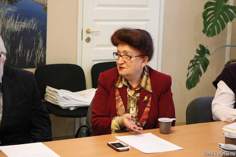 Ее поддержала и советник ректората Петрозаводского госуниверситета Наталья Рузанова: «Есть не только над чем работать, но и кому работать». Общественный совет при музее-заповеднике «Кижи» был создан в декабре 2015 года. В него вошли 17 человек: председатель совета, главный научный сотрудник Сектора языкознания Института языка, литературы и истории КарНЦ РАН Ирма Муллонен, бывший директор музея «Кижи» Ельви Аверьянова, директор музея изобразительных искусств Карелии Наталья Вавилова, секретарь Карельского отделения Союза архитекторов России Андрей Васильев, председатель Гильдии мастеров республики Татьяна Ваян, председатель Общества помощи ручному труду «Заонежская изба» Наталья Вильк, директор Национального музея Карелии Михаил Гольденберг, директор Национального архива республики Ольга Жаринова, председатель Карельского отделения Союза дизайнеров России Георгий Иванов, глава Ассоциации этнокультурных центров Светлана Кольчурина, председатель Совета руководителей турфирм Карелии Владимир Кучеренко, академик, доктор архитектуры Вячеслав Орфинский, советник при ректорате Петрозаводского университета Наталья Рузанова, член Общественной палаты республики Татьяна Смирнова, проректор ПетрГУ Константин Тарасов, староста деревни Боярщина Михаил Терешко и бывший директор музея «Кижи», основательница Детского музейного центра Людмила Шилова.