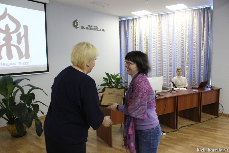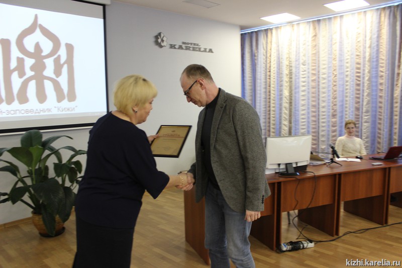 Открывая XIII отчётную конференцию, директор музея «Кижи» Елена Богданова поблагодарила сотрудников музея за плодотворную работу в 2016 году. Год был особенный — юбилейный, музей отмечал своё 50-летие, состоялось множество масштабных мероприятий, потребовавших немало сил, усердия и творческого подхода от трудового коллектива. Ряд сотрудников получили почётные грамоты и благодарственные письма от музея «Кижи». И ещё одну приятную миссию выполнила директор — вручила грамоты, подписанные президентом России Владимиром Путиным, и памятные медали «за вклад в подготовку и проведение XXII Олимпийских игр». Награды получили руководитель службы культурно-просветительской деятельности и внешних связей Ирина Павлова, начальник хозяйственного отдела по административно-хозяйственной работе о. Кижи и МТО Сергей Пахомов, специалисты по просветительской работе Алексей Исаев и Марина Ноженко, специалист по экспозиционной и выставочной деятельности Татьяна Кубышкина.
