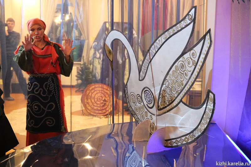 На открытии выставки дети с азартом участвовали в «сотворении мира», а он, согласно рунам карело-финского эпоса «Калевала», сделан из яйца. Прошли увлекательной дорогой из Калевалы в Похьелу — на этом пути встречаются не только прекрасные и добрые герои, но и коварные колдуньи, опасные препятствия, но тем интереснее этот путь. Каждый ребёнок может сам попробовать себя в роли мудрого Вяйнемёйнена, бесстрашного Илмаринена или нежной Айно. С помощью кукол, ярких декораций, театрального света, занавеса ручной работы создана неповторимая атмосфера, которая, безусловно, раскроет артистические таланты в каждом малыше.
