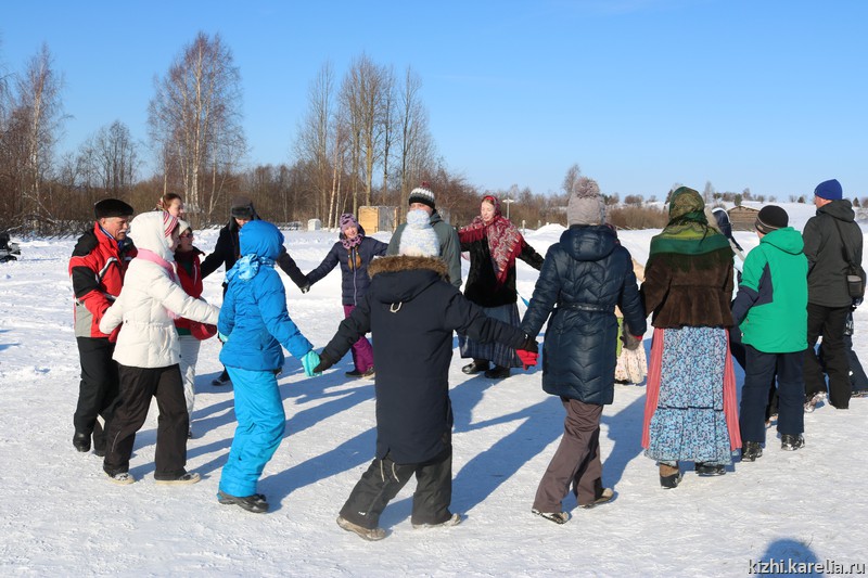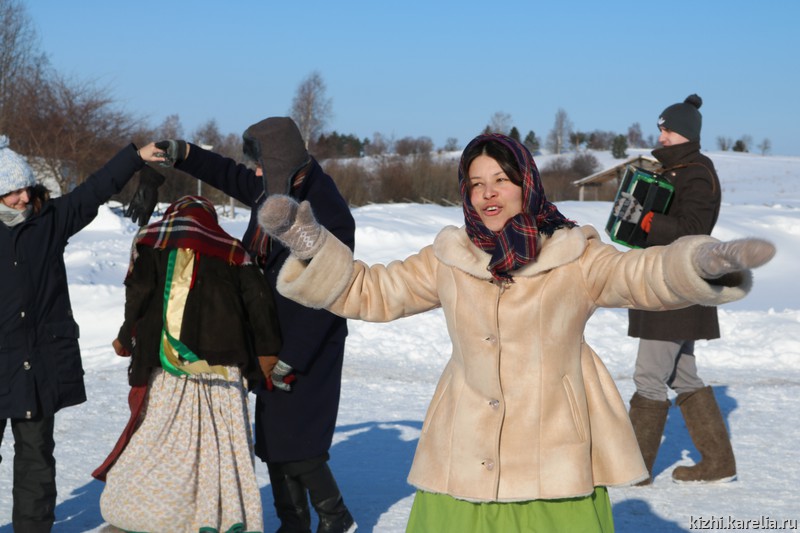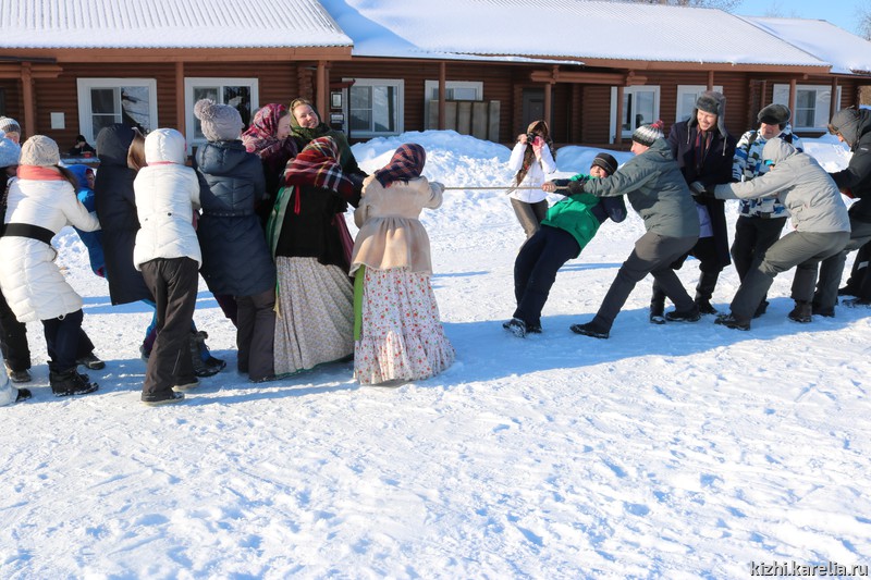 Сама активная часть зимней программы — игры и забавы на свежем воздухе. К Масленичной неделе фольклорно-этнографический ансамбль музея «Кижи» подготовил специальные игры, танцы, хороводы — зиму провожали, соблюдая старинные традиции. В Заонежье масленицу не сжигали, зато обязательно перетягивали канат, загадывая — скоро ли придёт весна? Мужская команда олицетворяла собой весну, женская — зиму. В последний день Масленицы победили мужчины, а это значит, что весна вот-вот вступит в свои права!