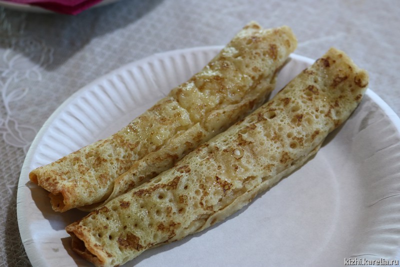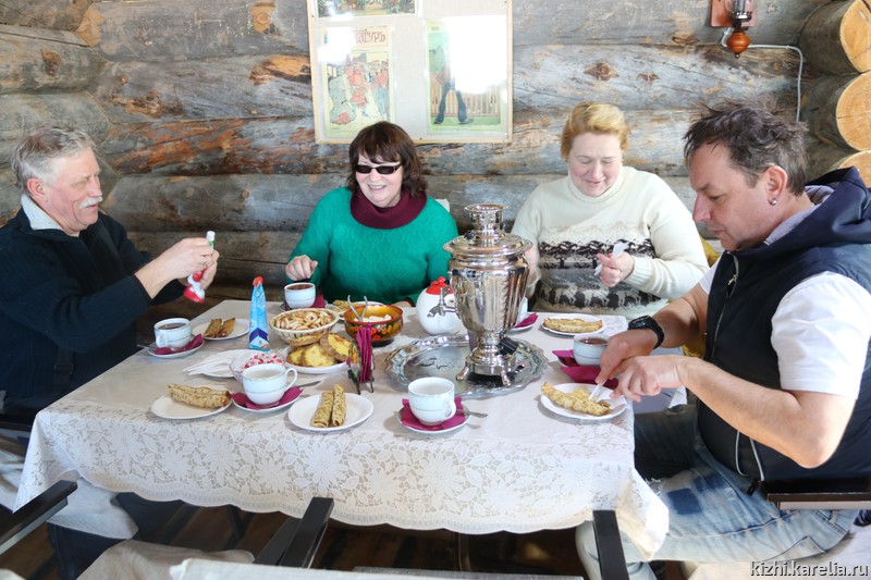 Обязательная часть каждой зимней программы — горячий чай с традиционными карельскими пирогами в кафе, стилизованном под «чайную-читальню» конца XIX — начала XX вв. На Масленицу, конечно же, ели блины.