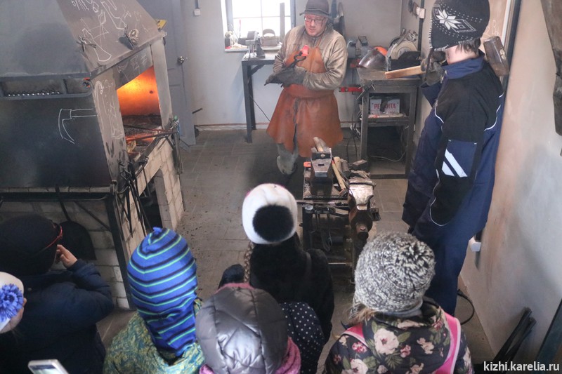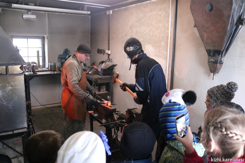 Сегодня малыши побывали в «кузнице Илмаринена»: с приёмами кузнечного ремесла их познакомил кузнец музея «Кижи», научный сотрудник сектора сохранения, изучения и демонстрации традиционных ремесел Иван Воробьёв. Затем состоялась экскурсия в «Семейный музей бересты», которая сама по себе подарила много приятных впечатлений, но в музей на улицу Горького и обратно дети со своими преподавателями шли пешком, а ведь в городе столько всего интересного! Останавливались на площадях, у памятников, возле старинных зданий, дети с большим вниманием слушали рассказы сотрудников Детского музейного центра. Свои впечатления об этой познавательной прогулке участники «Умных каникул» изложили в небольших эссе (орфография и пунктуация сохранены).
