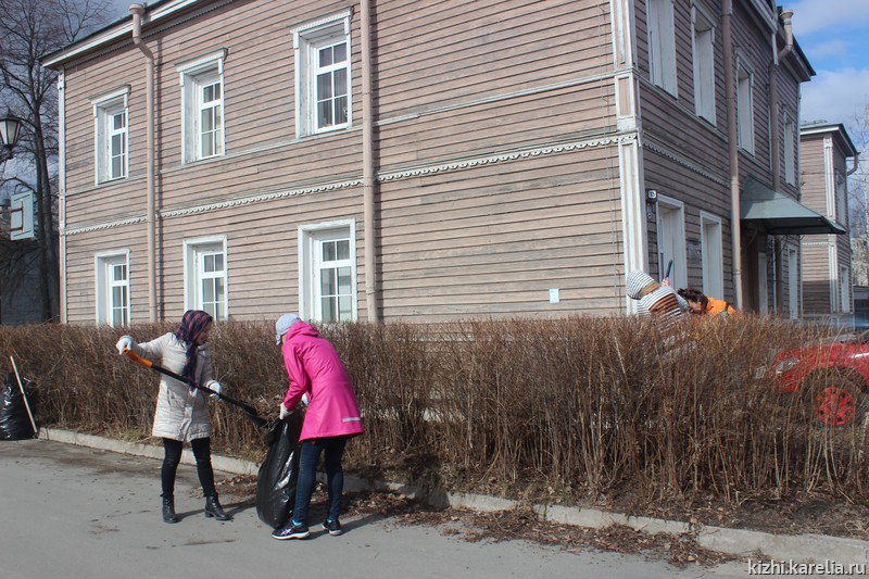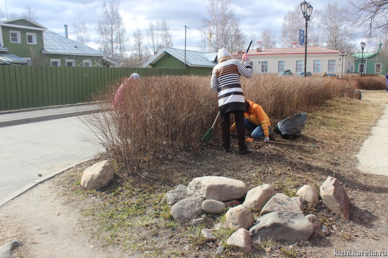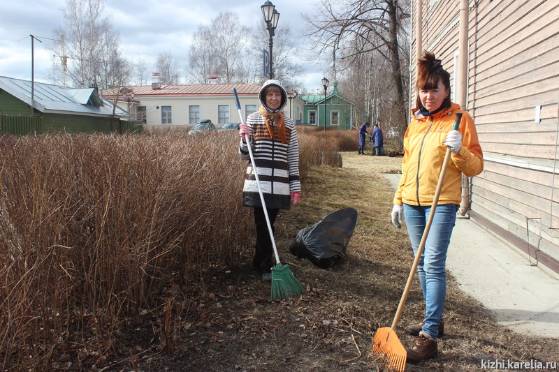 Также большой трудовой десант сотрудников музея высадился сегодня на острове Кижи. C 29 апреля проходит традиционная весенняя уборка острова.