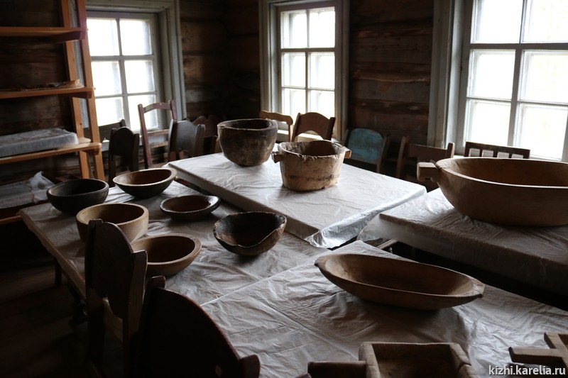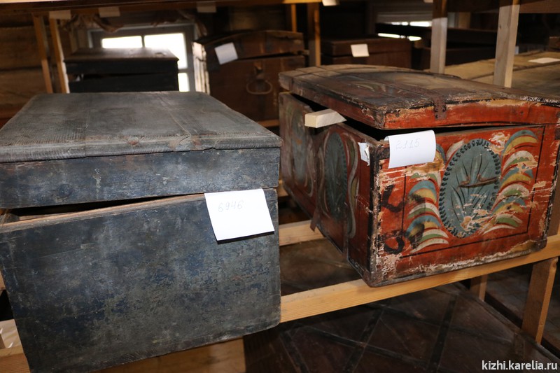 «Государственный музей-заповедник „Кижи“ — это музей традиционной культуры народов Карелии. В его основной экспозиции представлены традиционные крестьянские дома и хозяйственные постройки, характерные для северной деревни конца XIX — начала XX века. Во многих помещениях воссозданы традиционные интерьеры соответствующего периода времени. Однако задача музея состоит не только в том, чтобы показать посетителям его свое собрание, но и в том, чтобы сохранить его для будущих поколений. По этой причине представленные в экспозиции фондовые предметы находятся под постоянным контролем со стороны музейных работников и при необходимости изымаются из экспозиции и отправляются на реставрацию. В конце каждого сезона экспозиция музея консервируется, а предметы упаковываются. Те из них, которые нуждаются в профилактической обработке, передаются фонды и реставрационные мастерские.