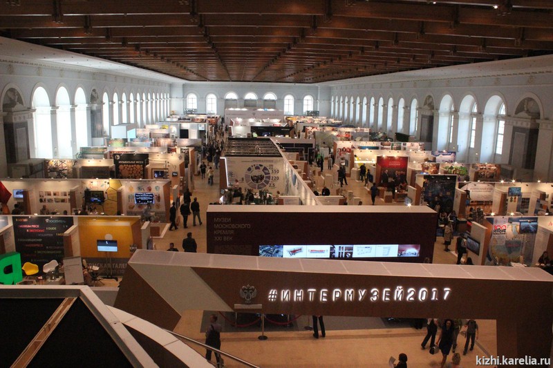 Завершилась работа стенда музея «Кижи» в Московском Манеже на фестивале «Интермузей-2017» — главном музейном форуме года, который проходит под патронажем Министерства культуры России. За время работы стенда, посвященного традициям народного судостроения и судоходства, его посетили около 6 000 человек. Гости могли увидеть фильмы об острове Кижи, осмотреть точную копию древней долбленой лодки (возраст оригинала, найденного на Ладоге, превышает четыре тысячи лет) и каноэ из бересты, изготовленное по старинным технологиям молодым московским мастером Алексеем Рыбаковым. Вдохновитель Кижской регаты Юрий Наумов, руководитель фольклорно-этнографического ансамбля музея Наталья Михайлова и специалист по просветительской работе Марина Ноженко рассказывали гостям о памятниках и традициях заповедного острова, о программах и услугах музея «Кижи».