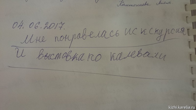 - «Удивительно интересно проведены экскурсии по комплексу «Кижи». Всех благ и процветания всем сотрудникам музея «Кижи».