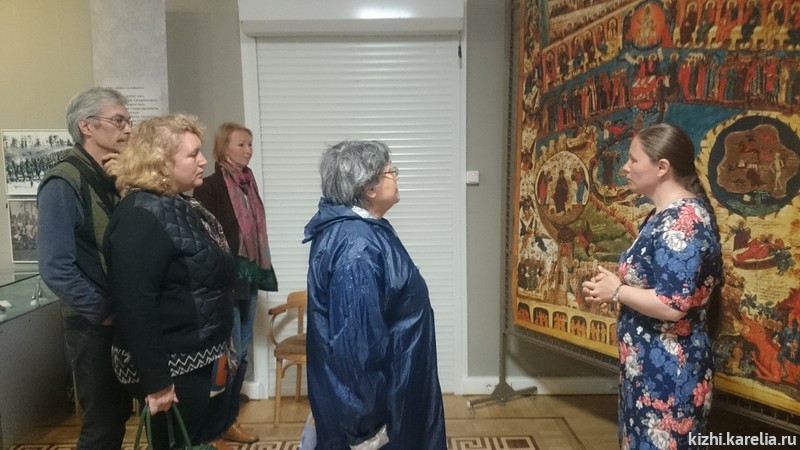 Встреча в музее-заповеднике «Кижи» началась со знакомства с выставкой «Дай-ко, Господи, мне добрый путь дороженьку…», посвященной 190-летию известной сказительницы Ирине Андреевны Федосовой. Экскурсию для гостей провела автор экспозиции, руководитель отдела по сохранению фольклорного наследия и руководитель фольклорного коллектива Наталья Михайлова.