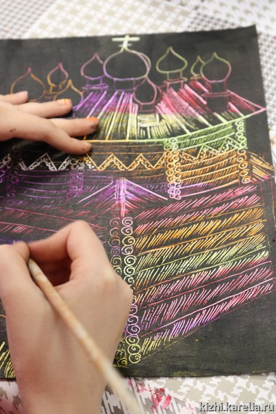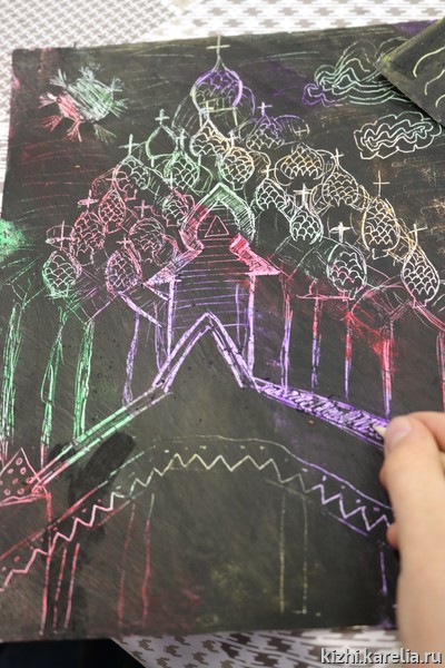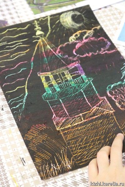 15 июня в музее «Кижи» состоялся мастер-класс для детей по рисованию в технике «граттаж». Такая возможность — поучиться рисовать у профессионального художника-реставратора древнерусской живописи — школьникам представилась благодаря проекту «Детский центр „Преображение“, лауреата открытого грантового конкурса „Православная инициатива 2016–2017“.
