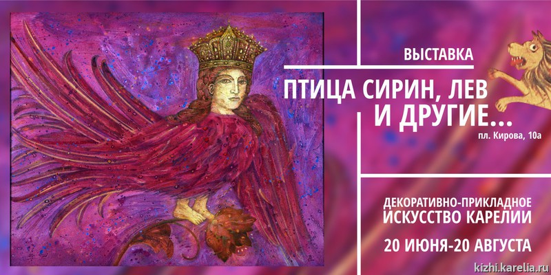 В выставочном зале на пл. Кирова, 10 А работает выставка «Птица Сирин, лев и другие», посвященная декоративно-прикладному искусству Карелии. Вы сможете познакомиться с творчеством профессиональных и самодеятельных карельских художников-прикладников, увидеть прекрасные изделия из дерева, бересты, кости, керамики, ткани.
