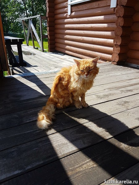 27 июля рыжий символ острова Кижи кот Кеша, как обычно, встречал гостей музея во входной зоне. Затем грелся в траве у Кижского погоста. Чувствует себя, судя по всему, хорошо, соответственно своему возрасту.