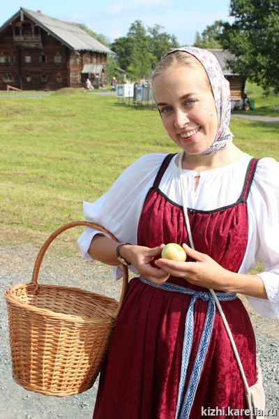 19 августа по традиции на острове Кижи собрались жители окрестных деревень, а также потомки знаменитых родов Заонежья. Многим из них были вручены награды за сохранение исторических ландшафтов в своих деревнях. Главный приз в конкурсе на лучший букет получила Алевтина Рачугина из деревни Боярщина.