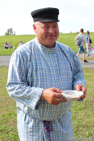 В такие дни все сотрудники музея «Кижи» становятся одной большой семьёй: начальник хозяйственного отдела Сергей Владимирович Пахомов варит кашу, руководитель службы культурно-просветительской деятельности Ирина Викторовна Павлова нарезает ровными кусочками пироги, а начальник отдела событийных мероприятий, музейных проектов и программ Наталья Александровна Дробаха угощает гостей.