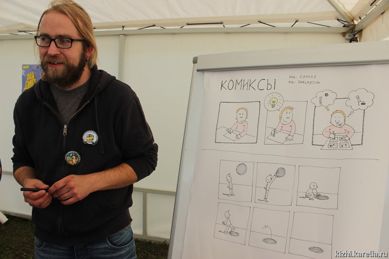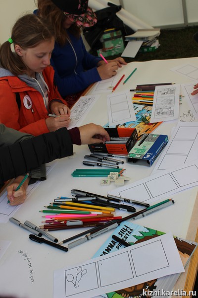 Уроки музыки. За песни, танцы и хороводы традиционно отвечал фольклорно-этнографический ансамбль музея «Кижи». И делал это мастерски! Им в помощь прибыл коллектив из Финляндии «Поющий ёжик». То есть музыка и немного иностранных языков! Кстати, на празднике был и профессиональный финский художник, мастер комиксов. С ним дети упражнялись в английском языке.