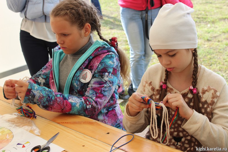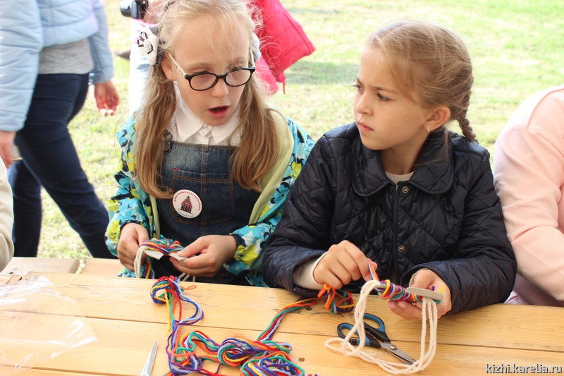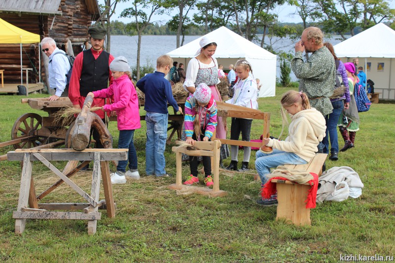 Уроки труда. Большое количество мастер-классов, интересных занятий — отличительна черта детских праздников на острове Кижи. Мальчиков, конечно, больше всего привлекало строительство бани. А ещё они, как завороженные, разглядывали топоры — заонежские, карельские, финские, шведские. Девочек увлекали рисование, плетение, вязание. Как всегда, повышенным вниманием пользовался процесс обработки льна.