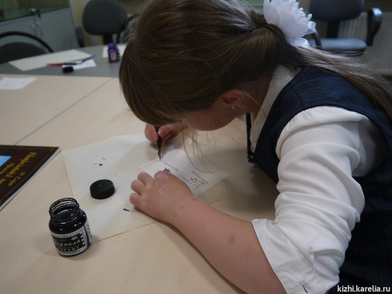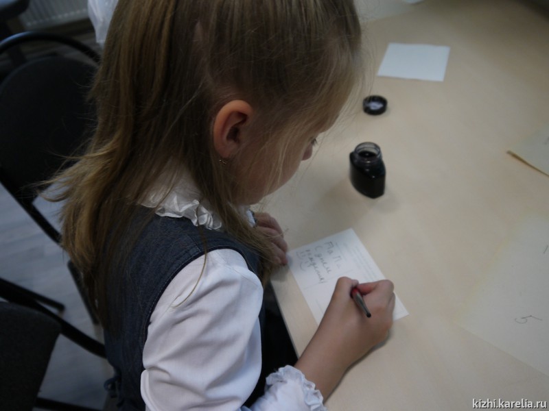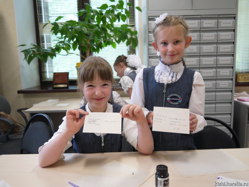 Путешествие по музейному фондохранилищу — процесс тоже очень увлекательный. Музейные кладовые раскрывают свои тайны, показывают свои сокровища. На мастер-классе дети подписали старые открытки с видами Петрозаводска перьевой ручкой и чернилами.