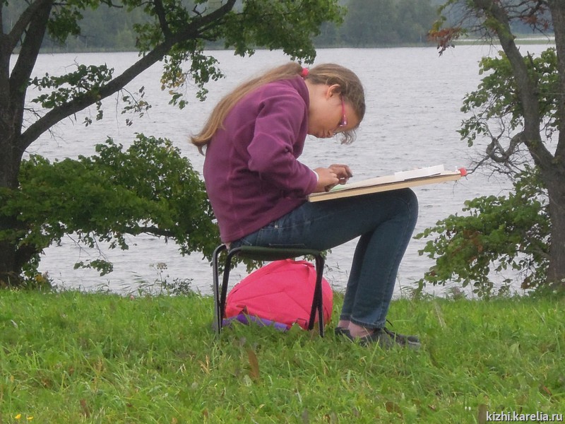 Неповторимая атмосфера острова-музея, тщательно продуманная программа, встречи с творческими людьми — сотрудниками музея и участниками группы — все это вдохновило и юных, и взрослых художников на создание замечательных произведений, в которых отразились разные грани наследия острова Кижи.
