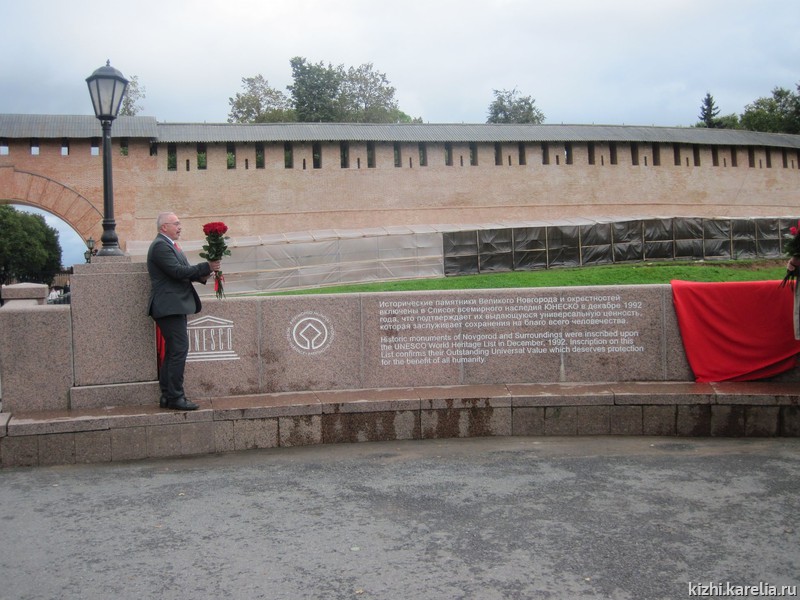 В связи с этой датой состоялось торжественное открытие информационного знака Объекта Всемирного Наследия у входа в Новгородский Кремль на Софийской площади.