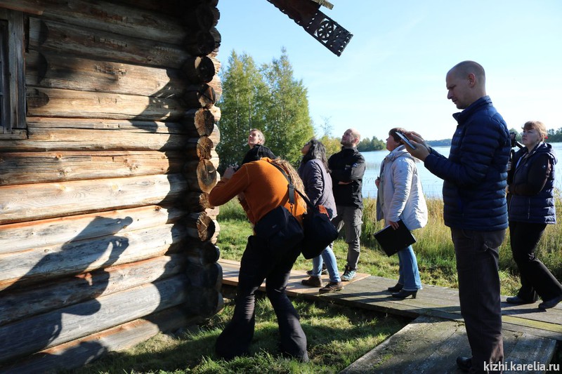 Кроме того, студенты получили возможность применить на практике полученные знания в области датировки и способов обмера деревянных построек, восстановления истории старинных зданий путем скрупулезного изучения их конструктивных особенностей. Благоприятный случай представился во время поездки по Кижскому ожерелью. Так называют исторические часовни в окрестностях острова Кижи. Каждая из пяти построек, которые посетили студенты, уникальна, каждая идеально вписана в ландшафт и служит живой иллюстрацией своеобразия заонежской традиции деревянной храмовой архитектуры в ее развитии на протяжении двух столетий. О каждой часовне рассказала гостям ведущий специалист музея по обеспечению сохранности объектов культурного наследия Маргарита Кистерная. Впечатление дополнила отличная погода и осенние пейзажи Кижских шхер. Один из участников курсов описал свои ощущения так: «Я не могу поверить, что это происходит со мной. Что я сейчас нахожусь здесь и вижу эту красоту».