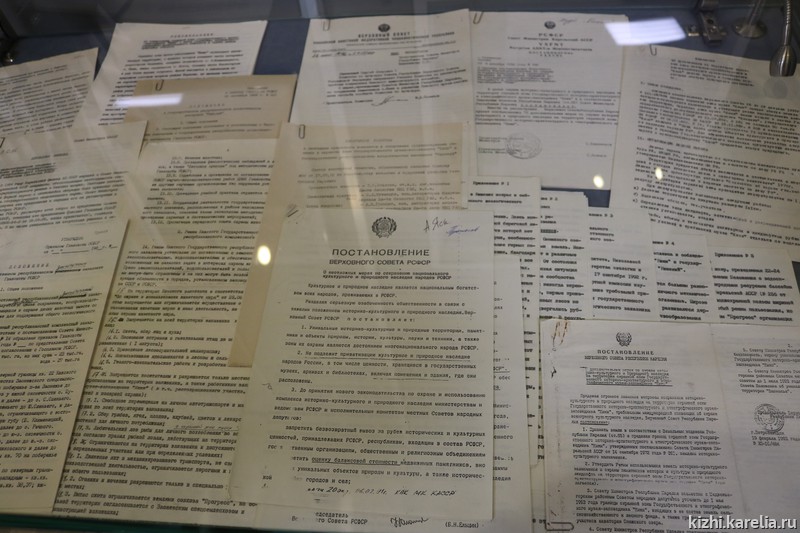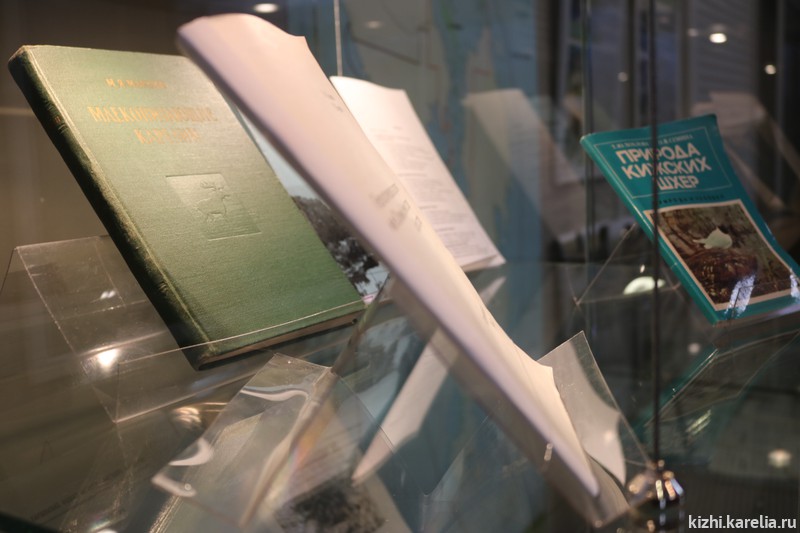 Выставка — результат большой работы отдела сохранения природного наследия музея «Кижи» во главе с Татьяной Павловой. В основу экспозиции положены материалы, рассказывающие об уникальности природного комплекса Кижских шхер, истории его изучения, наиболее интересных природных объектах. Своими экспонатами поделился и Национальный музей Республики Карелия, за что ему большое спасибо! Есть на выставке и подлинные документы из истории создания природного заказника «Кижский» — они, конечно, под стеклом, но познакомиться с содержанием могут все желающие, так как авторы подготовили копии.