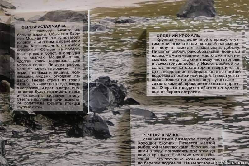 Кижи — это Карелия в миниатюре. На небольшой территории, как рассказала на открытии один из авторов выставки, доктор биологических наук Татьяна Хохлова, «встречаются север и юг»: здесь можно встретить растения, птиц, животных, характерных как для севера, так и для юга нашей республики. Огромные возможности для научных поисков! Не случайно, как отметил ведущий инженер по охране окружающей среды Юрий Протасов, свои научные изыскания в Кижских шхерах проводили институты геологии, леса, биологии, водных проблем Севера.