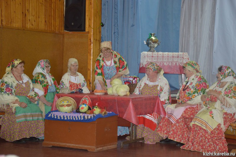 «Капустную эстафету» продолжили взрослые. На капустные посиделки пришли не только участники фольклорных коллективов, но и жители села с детьми. Гостей встречал новый творческий коллектив посёлка «Заонежская задумка». Все участники с удовольствием вспоминали старые рецепты, делились своими секретами по квашению капусты. И коллективно с шутками и прибаутками заквасили два ведра капусты. Закончился вечер частушками и танцами. Все участники отметили, что вечер в Доме Досуга получился занимательным и теплым.