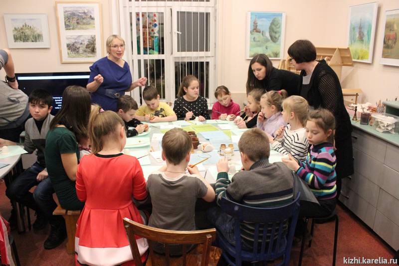 Детский центр «Преображение» оснащен необходимым оборудованием и методическими материалами для проведения тематических встреч, музейно-образовательных занятий и мастер-классов, направленных на приобщение детей и молодежи к духовной культуре предков. На встрече собрались учащиеся школы-интерната № 23, гимназии № 17, 30 и других учебных заведений г. Петрозаводска — участники программ «У святых ворот», «Остров Преображения» и «Уроки православной культуры». Настоятель Прихода Спасо-Преображенского храма острова Кижи протоиерей Павел Лехмус провел тематическую беседу с участниками встречи, ответил на многие вопросы детей. Приятным сюрпризом для детей стали подарки, сладкий стол и мастер-класс «Узоры времени».