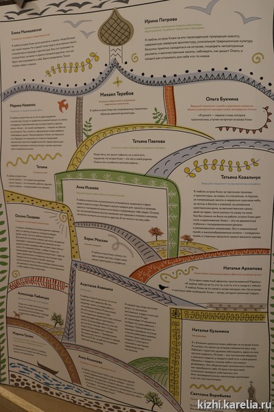 Директор музея «Кижи» Елена Богданова поблагодарила за сотрудничество бюро Арт Терра (г. Санкт-Петербург). Благодаря слаженной работе автора выставки Анны Исаковой, дизайнера музея «Кижи» Ирины Панковой и бюро Арт Терра в Петрозаводске открылась эта удивительная выставка, положившая начало Детскому музею. Конечно, и взрослым будет интересно, но в первую очередь здесь ждут детей! Каждый уголок выставки создан для малышей — все предметы можно трогать, играть с ними, послушать звуки острова, сказку на заонежском диалекте, былины и народные песни.