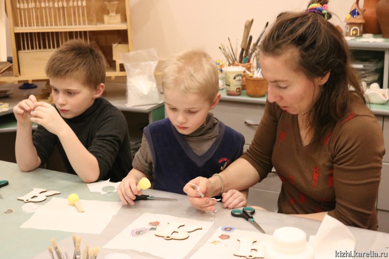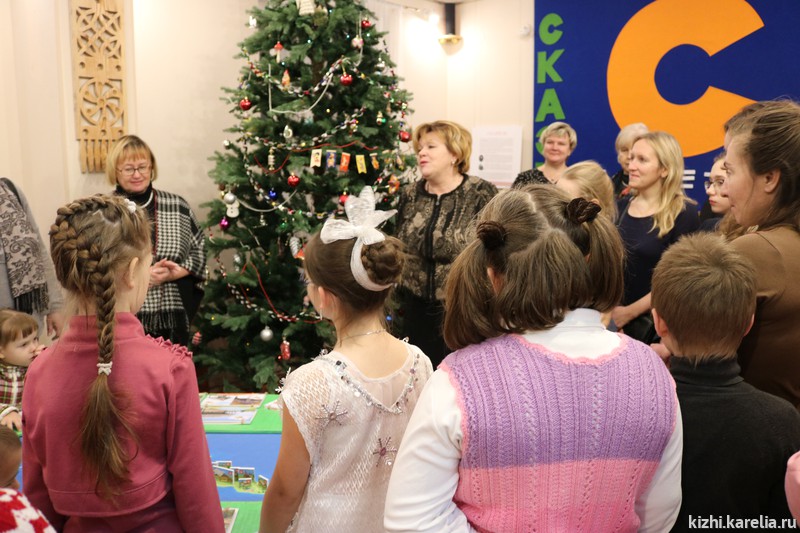 21 декабря в музей «Кижи» пригласили самых активных участников проекта «Детский центр „Преображение“. Для них была проведена экскурсия по новой интерактивной выставке-игре „Кижская азбука или Остров Кижи от А до Я“, а также мастер-класс по созданию сувенира „Буквица“. Никто не ушёл без подарка! Встреча проходила за несколько дней до Нового года, и дети с удовольствием доставали из большого „волшебного сундука“ пакеты с подарками от музея „Кижи“.