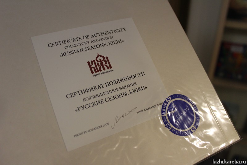 Многие предметы уникальны. Например, посвященные Кижам коллекционные авторские фотоработы московского фотохудожника Александра Львова, отпечатанные на металлизированной бумаге. Каждая работа снабжена сертификатом подлинности и подписана автором. Этой осенью фотовыставка «Русские сезоны Александра Львова. Кижи», в состав которой вошли представленные работы, была открыта на Тверском бульваре в Москве и получила высокую оценку публики. Музейный магазин — единственное место, где вы можете приобрести эти снимки.