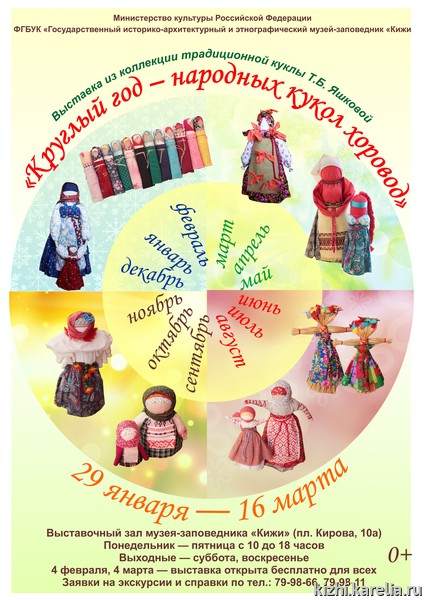 29 января в инфоцентре музея «Кижи» (пл. Кирова, 10 А) открылась выставка «Круглый год — народных кукол хоровод». Экспозиция представляет значительную часть наследия карельского мастера Татьяны Борисовны Яшковой — коллекцию традиционной народной куклы. Посещение выставки станет частью праздничной программы «Русская Масленица на Соборной площади» с 12 по 17 февраля.