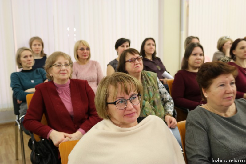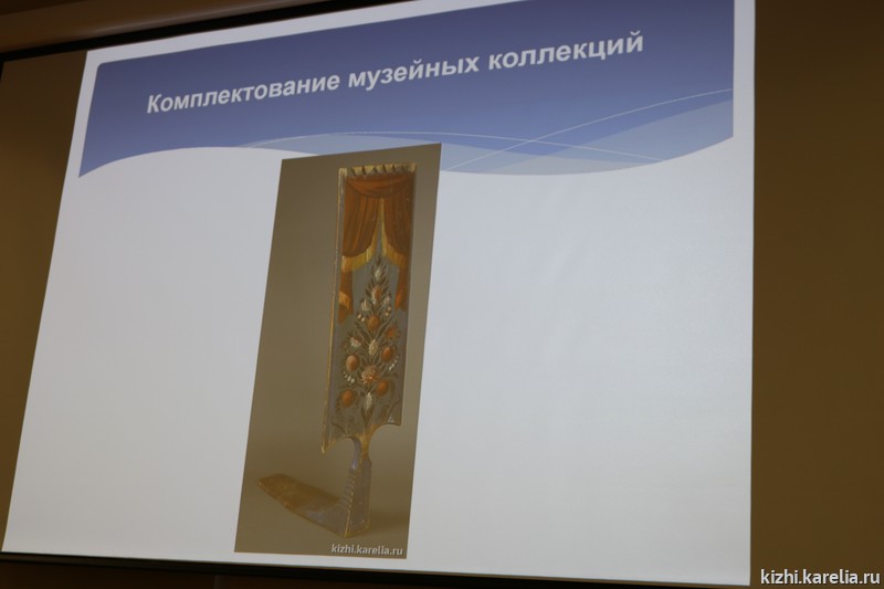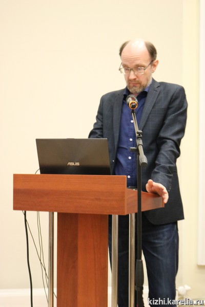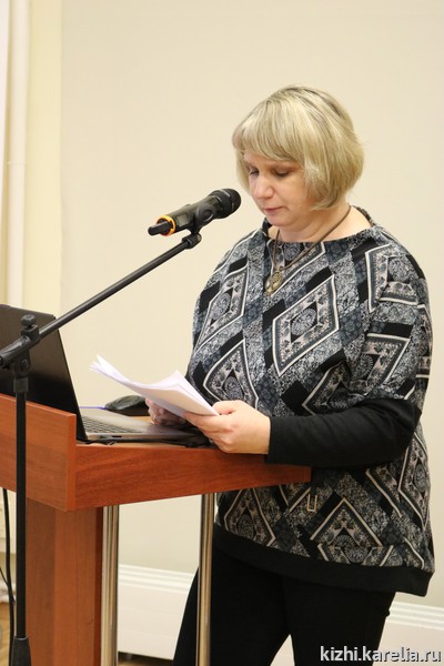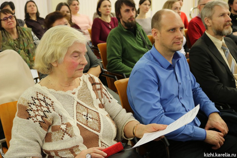 На XIV отчётную конференцию собрался не только практически весь коллектив музея. Пришли и члены Общественного совета музея «Кижи»: председатель совета, главный научный сотрудник Сектора языкознания Института языка, литературы и истории КарНЦ РАН Ирма Муллонен, директор Национального музея РК Михаил Гольденберг. Михаил Леонидович особенно внимательно слушал, (а также много записывал) выступление Ирины Набоковой — и. о. главного хранителя музейных предметов. Ирина Игоревна подробно рассказала об итогах работы службы научно-фондовой деятельности. Интересной была и презентация новых поступлений в фондовое собрание музея-заповедника «Кижи» в 2017 году.