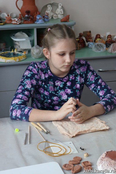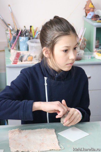 Первый день каникул начался со знакомства. Кто-то из детей уже бывал на «Умных каникулах» и возвращается в музей «Кижи» вновь и вновь. Другие — первый раз, и пока ещё робко знакомится с новыми друзьями и сотрудниками музея. Сегодня дети стали участниками интерактивной программы по выставке «Кижская азбука, или Остров Кижи от А до Я», то есть побывали не только на экскурсии, но и на мастер-классе «Буквица». Состоялось практическое занятие «Лэпбук, или книжка на коленях». В конце программы, в четверг дети презентуют родителям собственные лэпбуки, сделанные своими руками. После вкусного обеда ещё один интереснейший мастер-класс — лепка из глины. Школьники сделают бусы для мамы или для бабушки, не пропустив ни одного этапа изготовления. Разве это не чудо — вот перед детьми просто куски глины, а через какое-то время будет прекрасное украшение ручной работы!