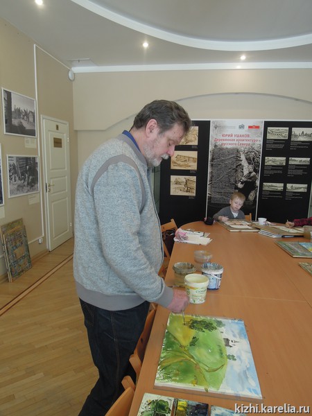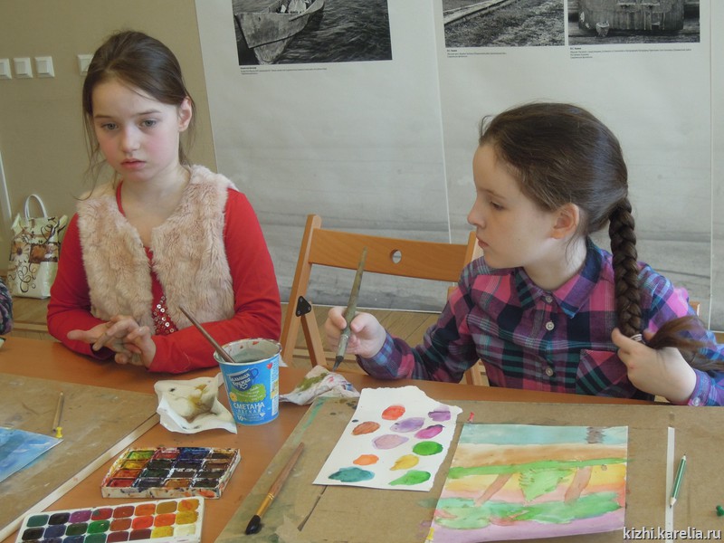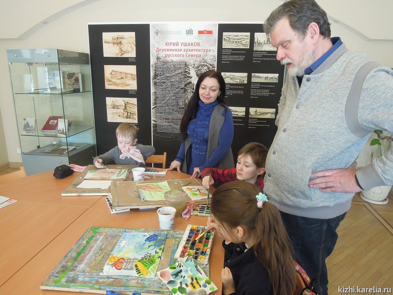 Во второй день программы участники «Умных каникул» побывали на экскурсии по выставке «Русский Север в творчестве архитектора Ю. С. Ушакова. К 90-летию со дня рождения». Экскурсию для детей провела автор выставки Лиана Степанова. По завершении экскурсии детям было предложено задание: выбрать наиболее понравившуюся картину и рассказать о ней. Невероятно, но юным экскурсоводам удалось представить выбранные работы, отметив их художественные достоинства. Погружение в творчество Ю. Ушакова помогло создать особый настрой у детей, которым предстояло попробовать себя уже в роли художников. Мастер-класс в технике акварели провел Владимир Петрович Лобанов, художник-акварелист, график, член Союзов художников и дизайнеров России, Заслуженный деятель искусств Республики Карелия.