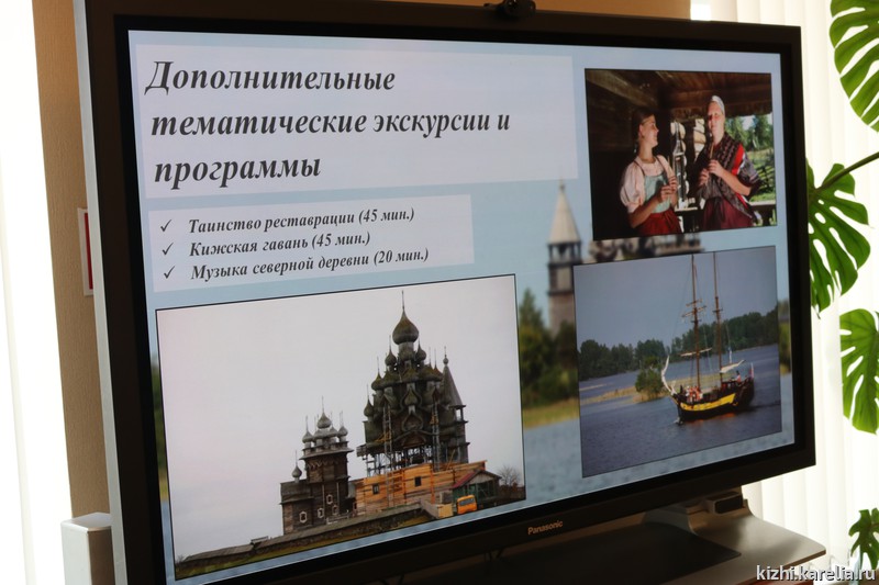 Большое внимание на совещании было удалено дополнительным тематическим экскурсиям и программам. Ежегодно музей «Кижи» готовит новые предложения, и лето-2018 — не исключение. Уверены, что большой популярностью у туристов будет пользоваться программа «Традиционная кухня народов Карелии», во время которой гости острова смогут не только узнать много интересного о карельской кухне, но и сами приготовить калитки, сульчинат или пирожки для зятя. Путешествие по Кижскому ожерелью этим летом можно совершить не только на гостевом транспорте, но и на живописном корабле музея «Кижи». Для тех, кому мало экскурсии по основным памятникам деревянного зодчества, предлагаются программы «Деревня Ямка» и «Дом на долгие года». С появлением модульных гостевых домов появилась возможность остаться на острове Кижи на ночь, и теперь туристы, приехавшие на заповедный остров в пятницу, могут провести здесь незабываемые два дня. И, конечно, хит этого сезона — программа «Традиции плотницкого мастерства». Реставрация Преображенской церкви близится к своему завершению, технологии не имеют аналогов в мировой практике. Только в 2018 и в 2019 году можно успеть увидеть это чудо и прикоснуться к таинству реставрации!