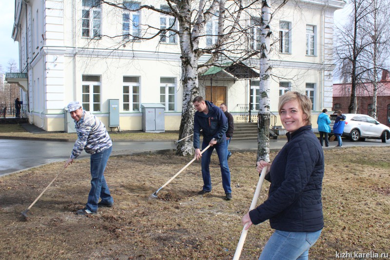 Ежегодно, в преддверии начала нового летнего туристического сезона музей «Кижи» приводит в порядок свои территории — как на заповедном острове, так и в Петрозаводске. С 3 по 7 мая пройдёт масштабный субботник на остров Кижи. А 27 апреля музейные сотрудники убирали мусор, старые листья, ветки, доски, что накопились за зиму в столице Карелии. Причём в субботнике принимают участие все, невзирая на должности — и заместители директора, и начальники отделов, и научные сотрудники.