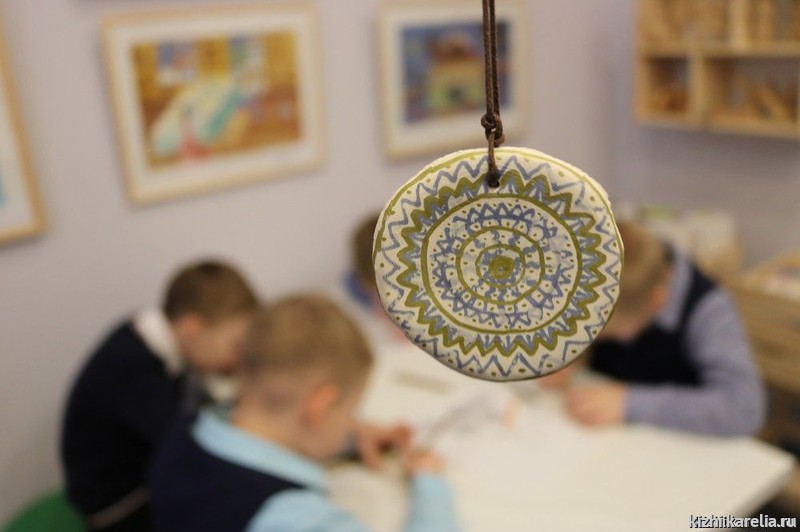 Мастер-класс по созданию медальона-оберега «Солнечный символ», конечно, требует усидчивости и старательности. Но даже самые маленькие дети с этим отлично справляются! Заготовки для медальона сделаны из керамики, на них наносится орнамент в виде традиционных заонежских узоров.