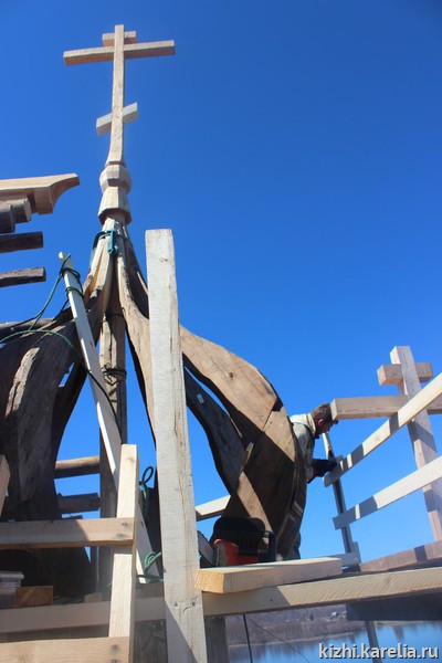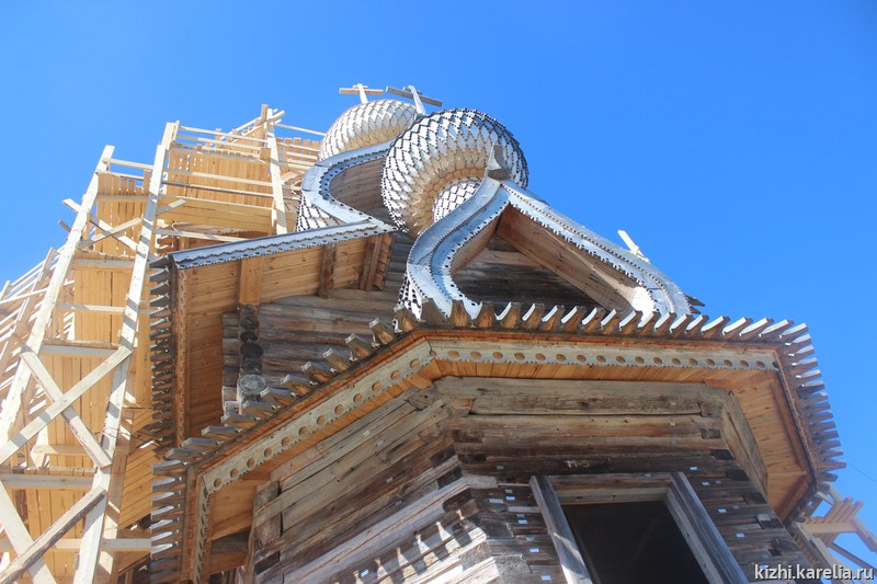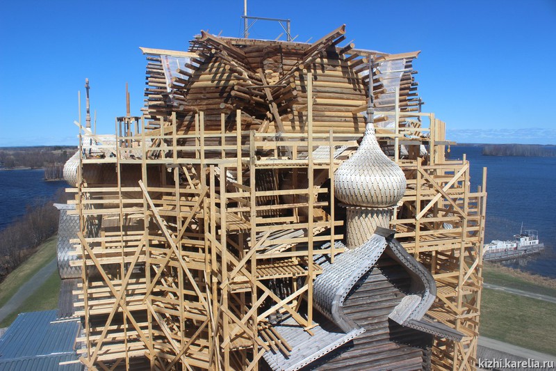 Нынешний сезон — последний, когда можно наблюдать за не имеющей аналогов в мире реставрацией Преображенской церкви. На сегодняшний день ведутся работы по сборке второго технологического пояса. Проводится реставрация главок первого пояса. Реставрация храма завершится в ноябре 2019 года.