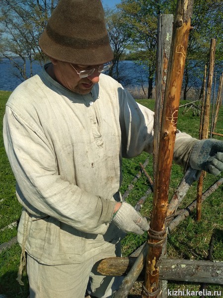 От тех времён до наших дней сохранилось наклонное расположение жердей. А также возможность строить такую изгородь без использования гвоздей — только с помощью гибких, предварительно расколотых пополам по всей длине и вымоченных еловых или берёзовых прутьев. Сейчас в качестве вязки для «заплота» сотрудники сектора экспозиционного освоения традиционного хозяйства Олег Скобелев и Борис Москин используют ветви черёмухи. В косом расположении жердей есть особое преимущество — скот такую преграду не подденет снизу, как в случае с прямой, горизонтальной, изгородью. Да и перепрыгнуть даже невысокую косую изгородь никто не решится — животное инстинктивно отпугнут торчащие, отёсанные топором, концы жердей.