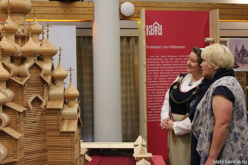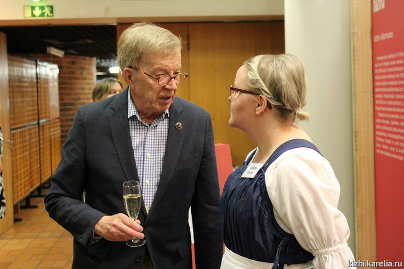 «Экспозиция посвящена уникальным памятникам, но опирается на общечеловеческие ценности» - заявил в своем выступлении на открытии выставки «Деревянное зодчество: учимся у предков, сохраняем для потомков, обучаем современников» Пертти Хаканен, член парламента Финляндии и председатель «Карельского союза», влиятельной общественной организации, объединяющей живущих в Финляндии карелов. Именно в штаб-квартире «Карельского союза» – Карельской доме (Karjalatalo) – организована экспозиция. Гостей на церемонии открытия встречала исполнительный директор Союза Сату Халленберг.