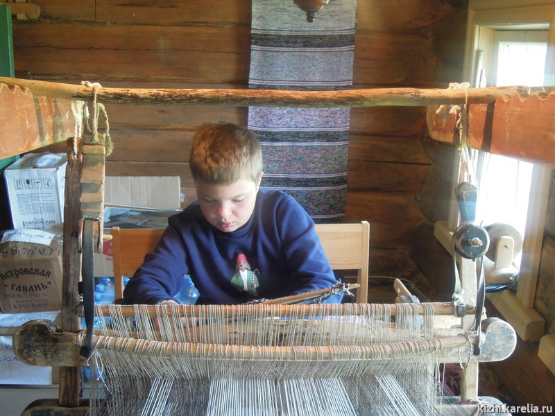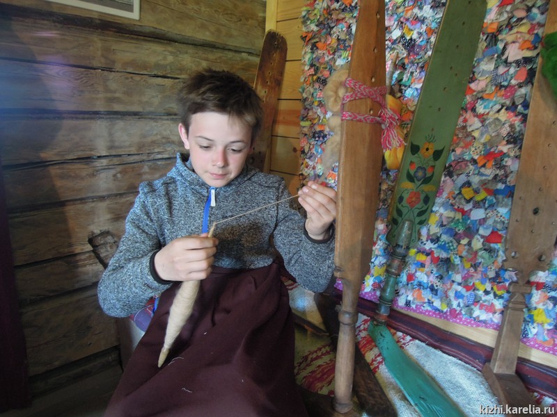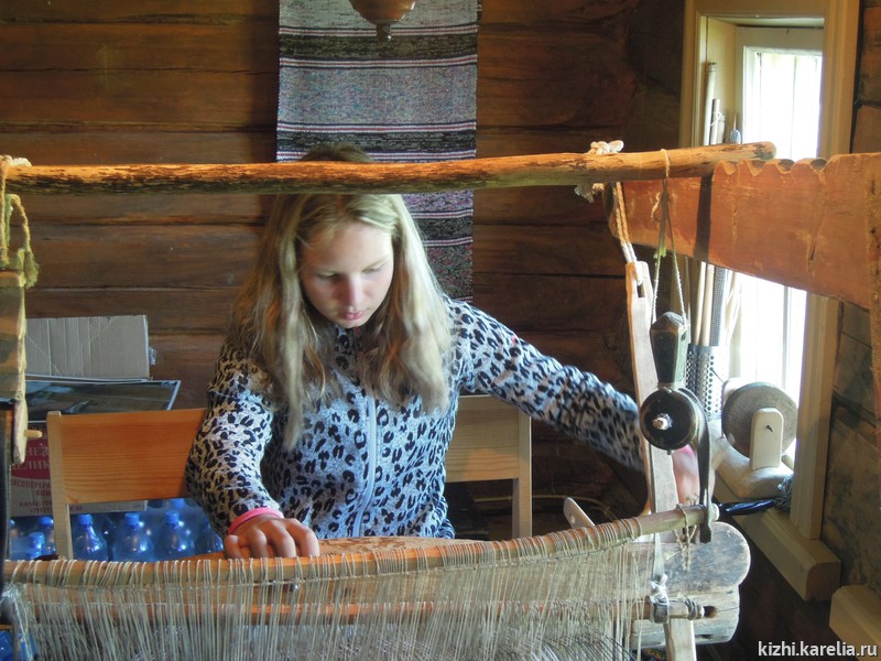 Насыщенная программа «Семейного путешествия на остров Кижи» включала экскурсии, занятия, мастер-классы. Вместе с Романом Мартьяновым семьи прошли по экологической тропе, а в доме Березкиной благодаря Марине Гусевой научились прядению и освоили ткацкий стан.