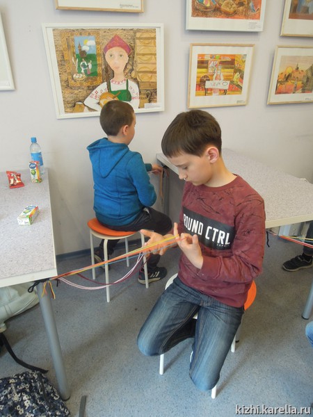 Самым увлекательным занятием для девочек стало прядение на прялке, шитье на «швейке» и вязание крючком, а мальчишки с удовольствием разрывали старую ткань на полоски и сматывали в клубки. На мастер — классах дети научились плести пояски и работать в технике «витраж».