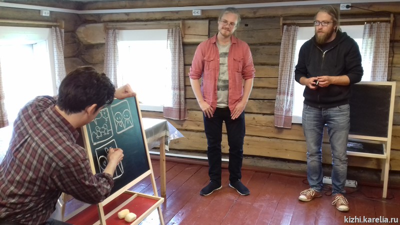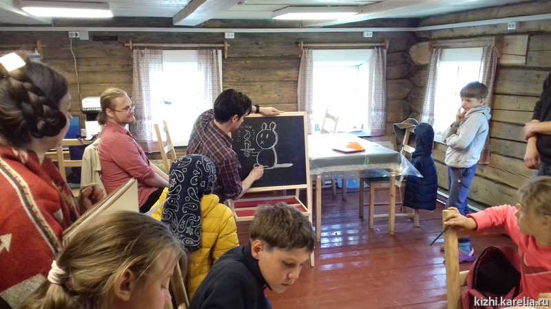 Еще два события — даже не назовешь их мероприятиями — произвело неизгладимое впечатление на участников группы — встреча с директором Архитектурно-реставрационного центра «Заонежье» Виталием Скопиным в Преображенской церкви и экскурсия по Плотницкому центру, которую провел для группы начальник Плотницкого центра Андрей Ковальчук — папа участницы студии. И дети, и взрослые задали столько вопросов Виталию Скопину, что встреча затянулась вместо сорока минут на полтора часа.