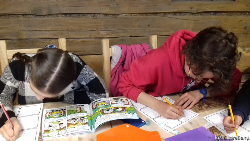 Еще одно событие, которое произошло за время пленэрной практики,— имело международный характер. Речь идет о мастер-классе, который провели для студийцев и их родителей финские художники Вели-Матти Урал, Сами Нююсёля, Харри Филппа из г. Оулу. Дети и взрослые учились создавать комиксы — рисованные истории, рассказы в картинках — а потом представляли их нашим финским друзьям. Создатели комиксов из Оулу были поражены умению студийцев за короткое время создать свою историю и воплотить ее в ярких образах.