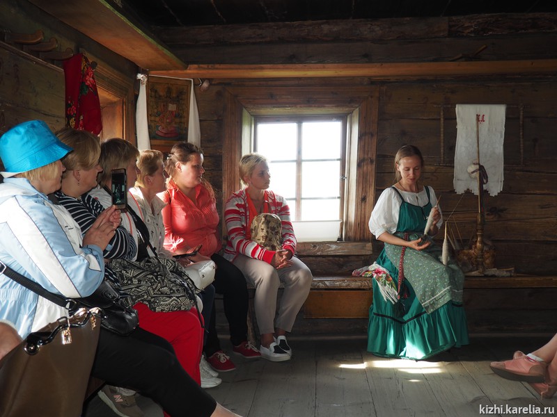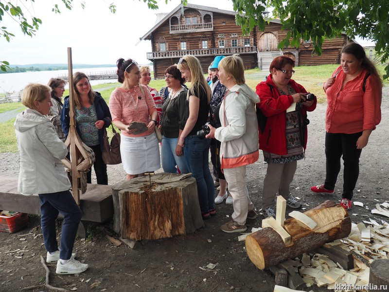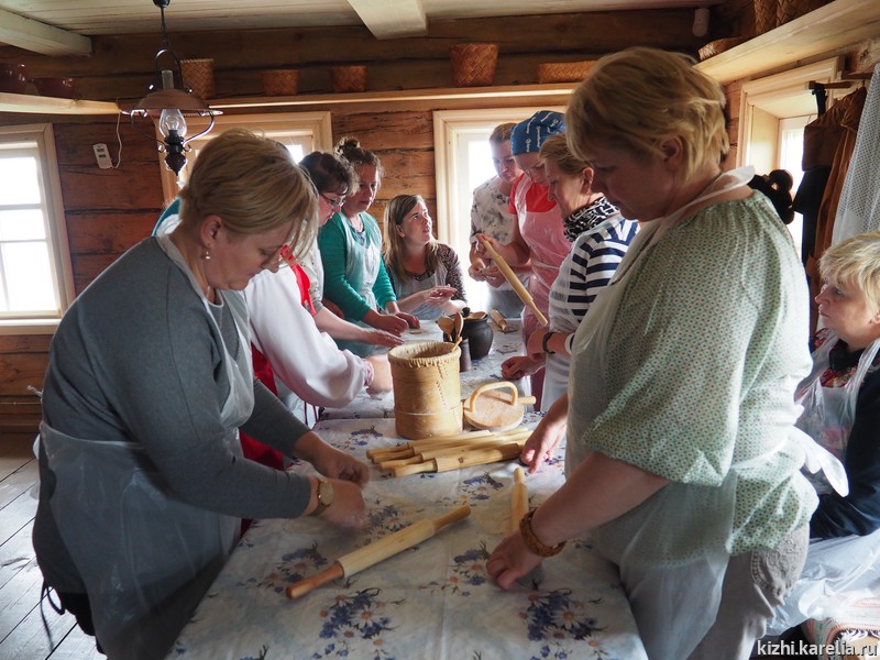 В карельском секторе музея «Кижи» участники семинара познакомились с культурой карелов-ливвиков Пряжинского района. Людмила Трифонова, ведущий научный сотрудник отдела истории и этнографии, рассказала о самобытном декоративном убранстве дома, его интерьерах. На занятии «Духовное наследие Карелии» педагоги познакомились с программами Фольклорно-этнографического ансамбля музея «Кижи» под руководством Натальи Михайловой, начальника отдела изучения и презентации фольклорного наследия. В доме Березкиной Марина Гусева, заведующая сектором сохранения, изучения и демонстрации традиционных ремесел, провела практическое занятие, посвященное традиционным женским ремеслам, а Анна Анхимова, специалист по связям с общественностью отдела событийных мероприятий, музейных проектов и программ, — мастер-класс по традиционной карельской выпечке.