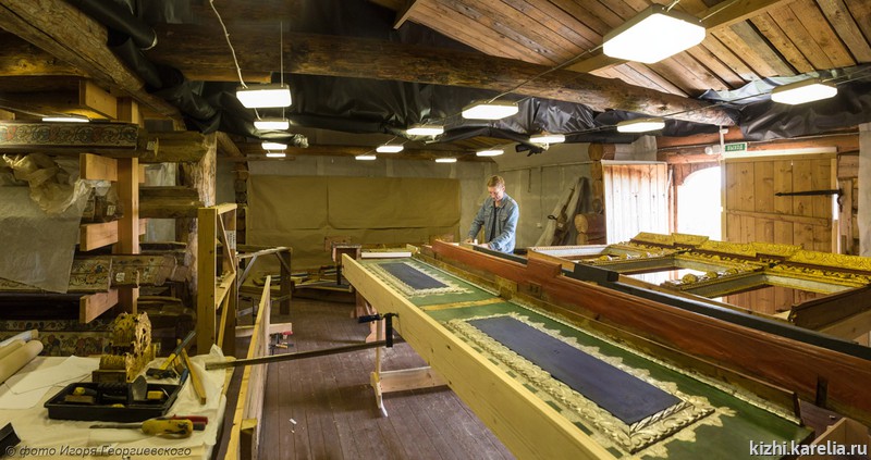 На острове Кижи продолжается реставрация иконостаса Преображенской церкви