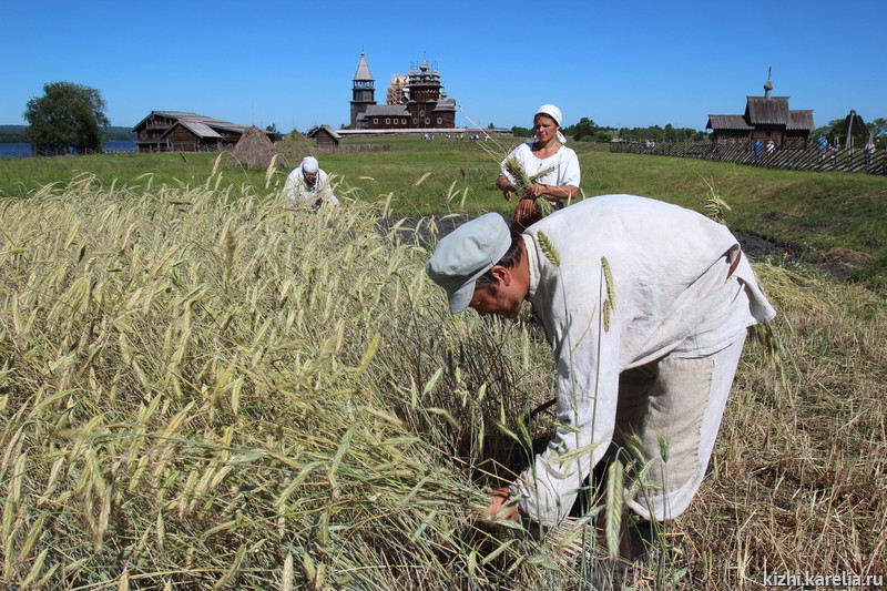 Сей год жнитва ржи на Кижах начата необычно рано — 18-го июля, по достижении нужной спелости, а жнут рожь серпами в конце восковой спелости зерна, когда зерно уже налитое, но ещё мягкое, как бы «восковое».