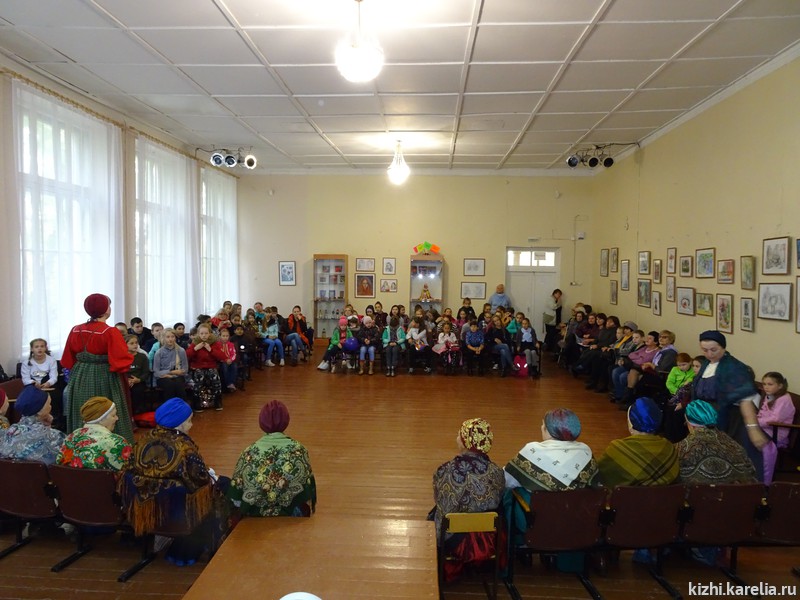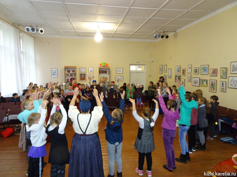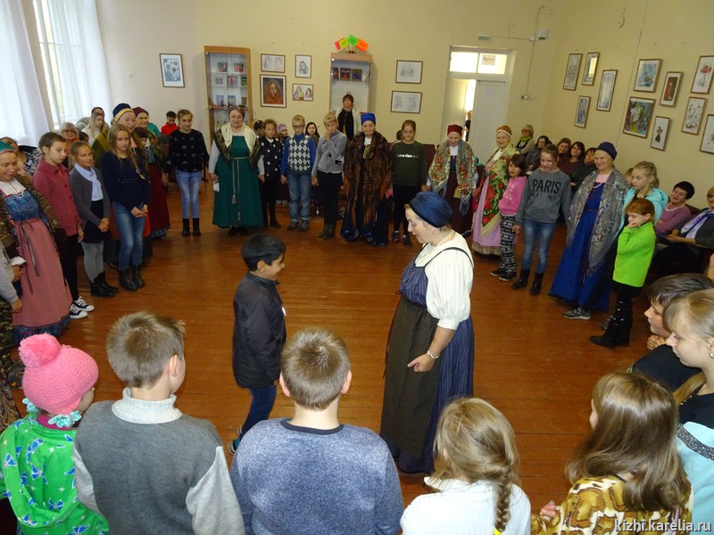 Детская программа «Катилось яблочко по блюду, ты води, а я не буду…» была представлена в Детской школе искусств посёлка Надвоицы. В актовом зале яблоку негде была упасть — собралось более 100 детей, многие из которых посещают музыкальные занятия, классы хореографии, а также студию изобразительного искусства. Надежда Порозова была ведущей встречи и рассказала ребятам о значении бытовых предметов. Как оказалось, сегодня многие из ребят не знают что такое лучина и керосиновая лампа, почему раньше играли с берестяным мячиком?! Ответить на эти и многие другие вопросы помогли народные игры и забавы.